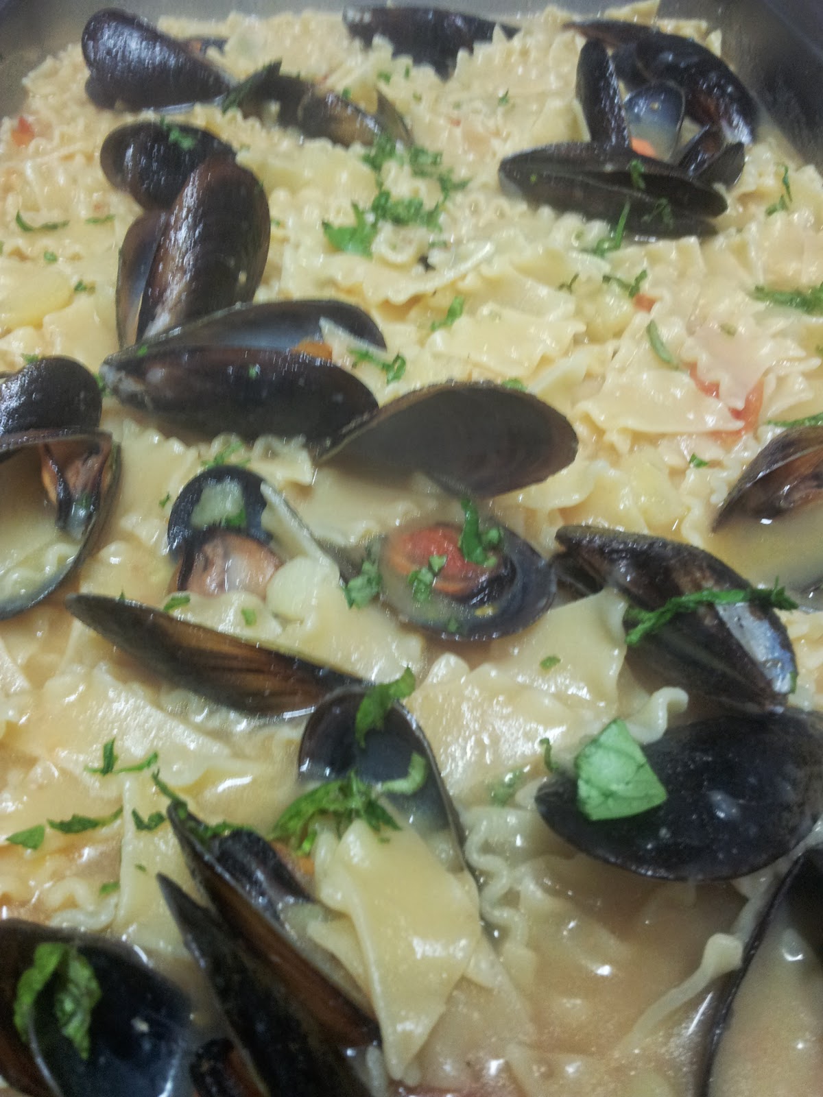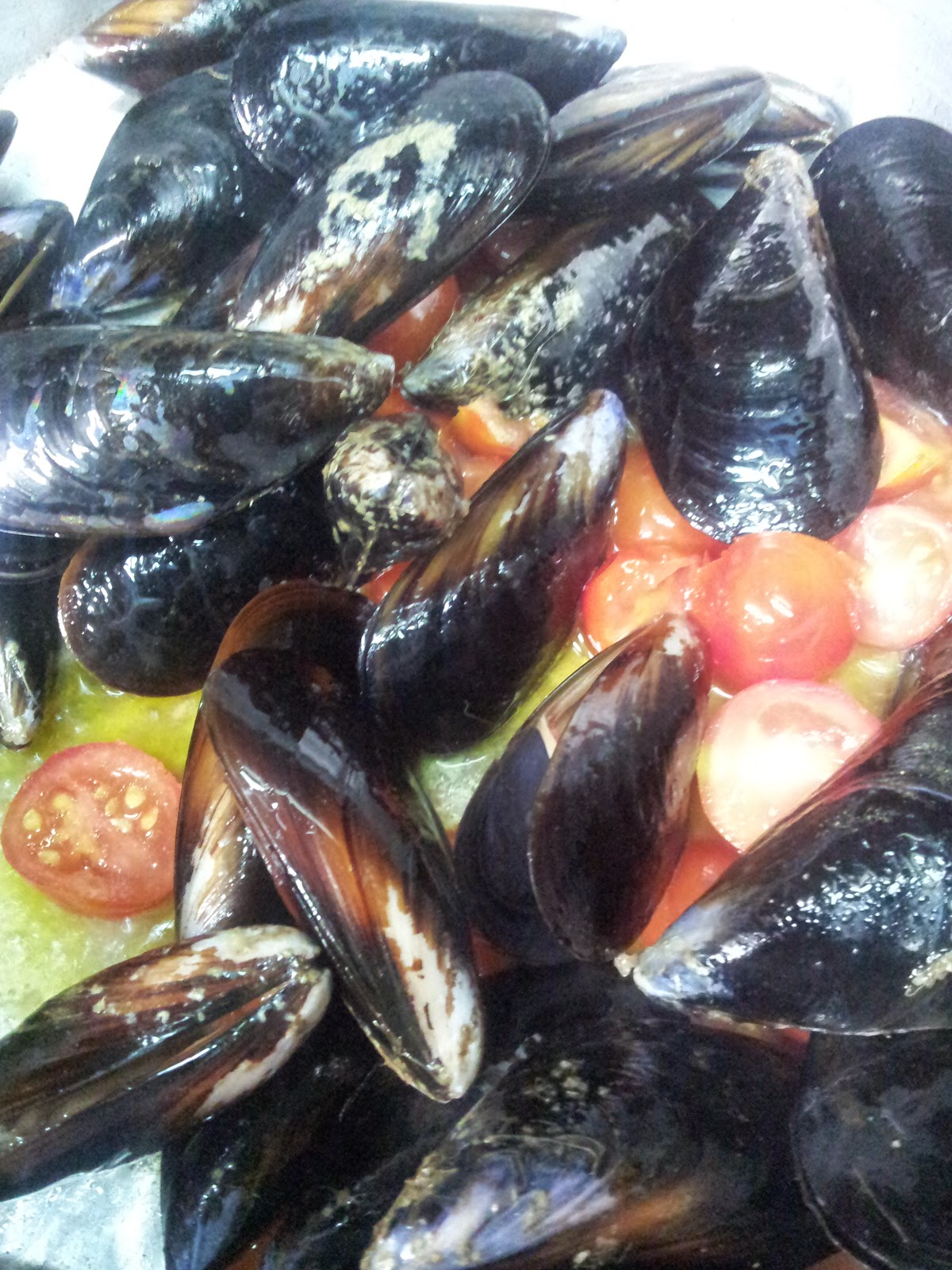 | a cottura quasi ultimata aggiungere le cozze, aggiungere altro sale dopo avere assaggiato il sughetto far amalgamare sul gas, decorare con trito di prezzemolo e servire!!! |
