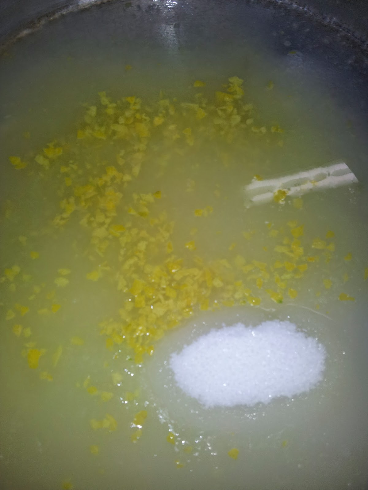 | IN UNA PENTOLA METTI IL SUCCO DEI LIMONI, LA BUCCIA E LO ZUCCHERO E FAI BOLLIRE QUALCHE MINUTO. AGGIUNGI GLI ALCOLICI QUANDO SARà BELLO FREDDO |