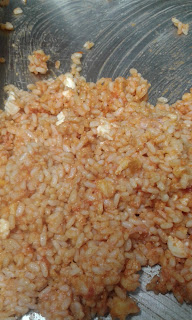 | CONDIRE IL RISO CON MOZZARELLA TRITATA FORMAGGIO E POMODORO. SE PIACE AGGIUNGERE I PISELLI COTTI E CON RAGOUT DI CARNE TRITATA ANZICHè IL SUGO SEMPLICE. |