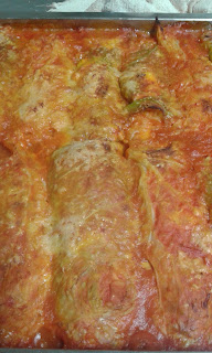 | IN UNA PIROFILA STENDERE UN VELO DI SUGO DI POMODORO POI DISPORRE GLI INVOLTINI, COPRIRE DI ALTRO SUGO E POI COSPARGERE DI FORMAGGIO GRATTUGIATO. INFORNARE A 180° PER 45 MINUTI. |