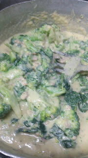 | ADESSO FINALMENTE AGGIUNGIAMO I BROCCOLI COTTI AL DENTE. MESCOLIAMO CON CURA E MOLTO ADAGIO IN MODO DI LASCIARE I BROCCOLI BELLI INTERI. |